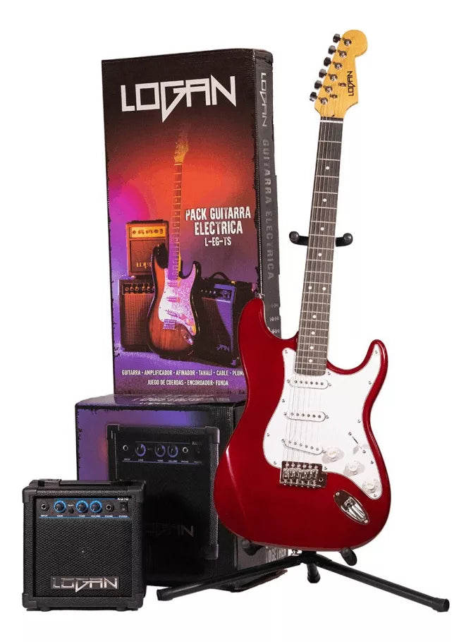 La Guitarra eléctrica Logan tipo Stratocaster Pack es la mejor opción para principiantes, tiene todo lo que necesitas para comenzar desde cero. La guitarra tipo Stratocaster es ideal de entrada para los guitarristas y músicos. Incluye el amplificador Logan 10W, funda, thalí, cable, juego de cuerdas, plumillas, afinador y encordador.
