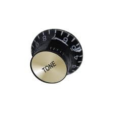 Perilla tono plastico negro calca dorada para guitarra electrica