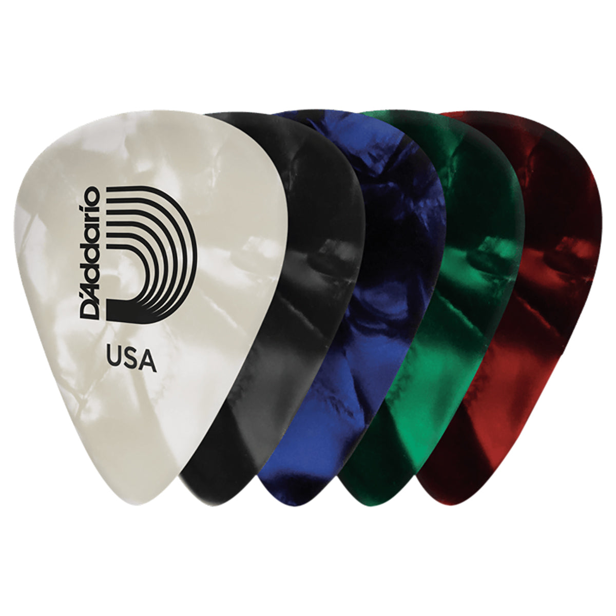 Paquete con 10 púas para guitarra, diversos colores, calibre extra grueso (1.25 mm) ideal para strumming y plumilleo articulado, forma estándar para tocar cómodo, alta calidad que proporciona un tacto natural y un tono cálido, embalaje diseñado para un mínimo de residuos y el impacto natural.