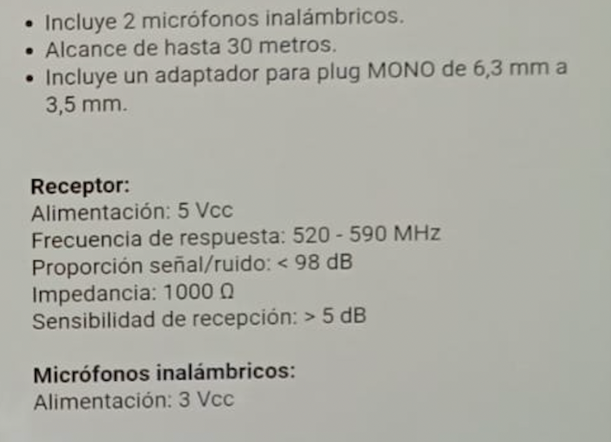 SISTEMA DE MICROFONO INALAMBRICO UHF 490-471 N.
