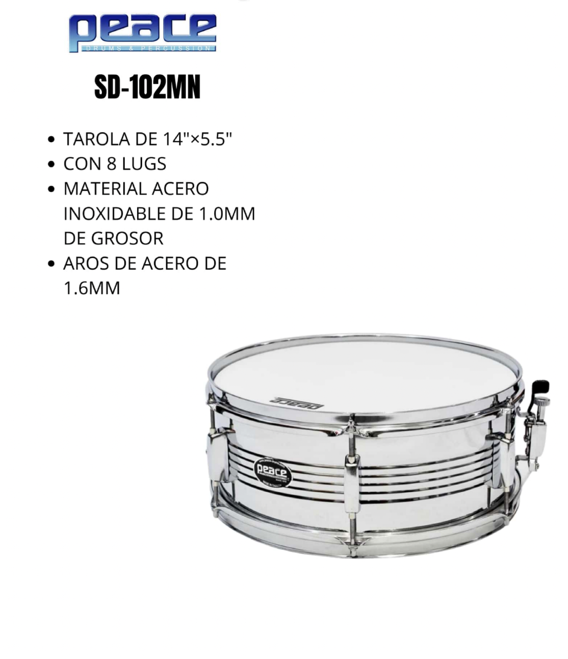 TAROLA CROMADA 14\" X 5,5\" 6 LUGS MARCA PEACE.