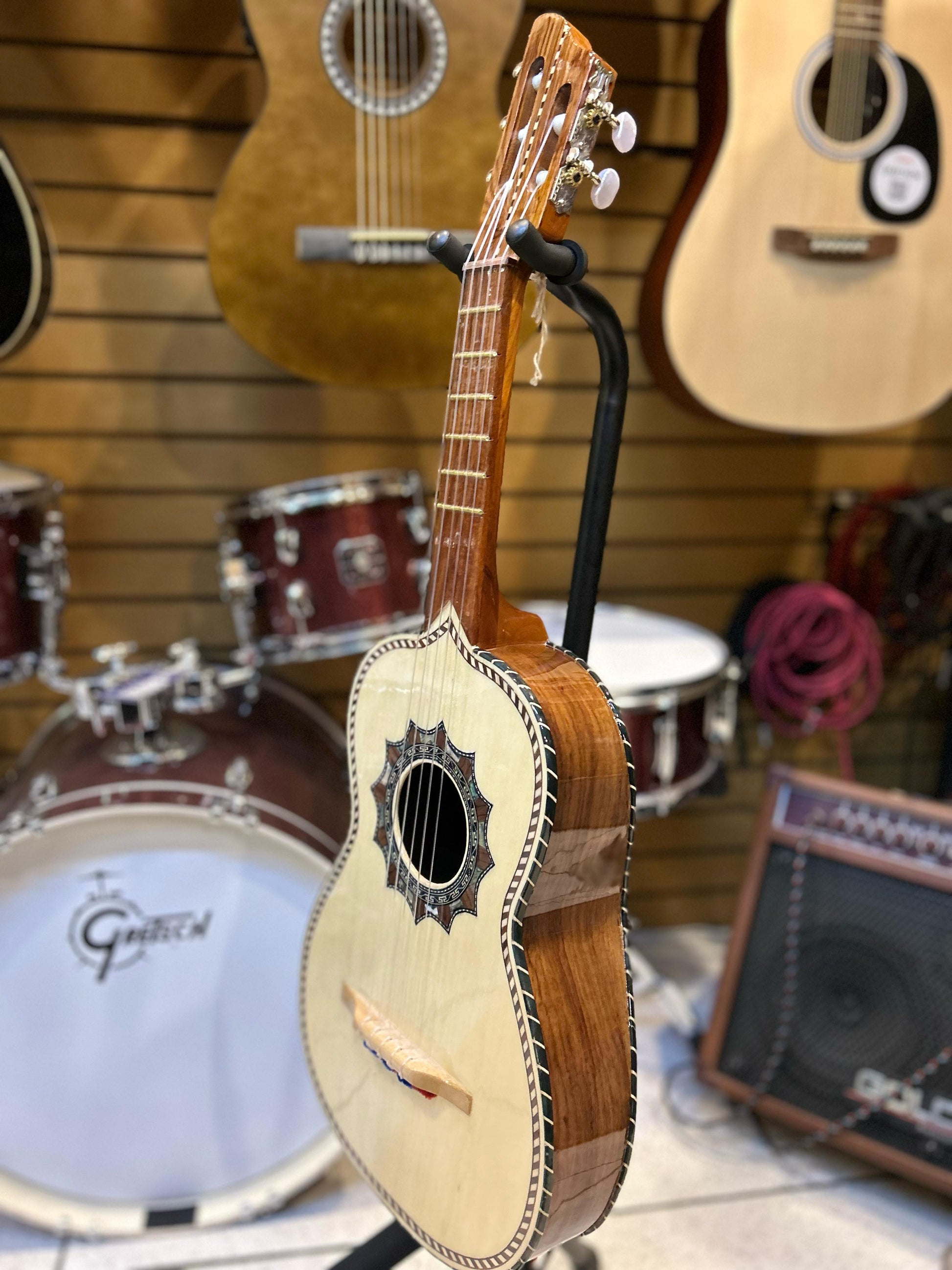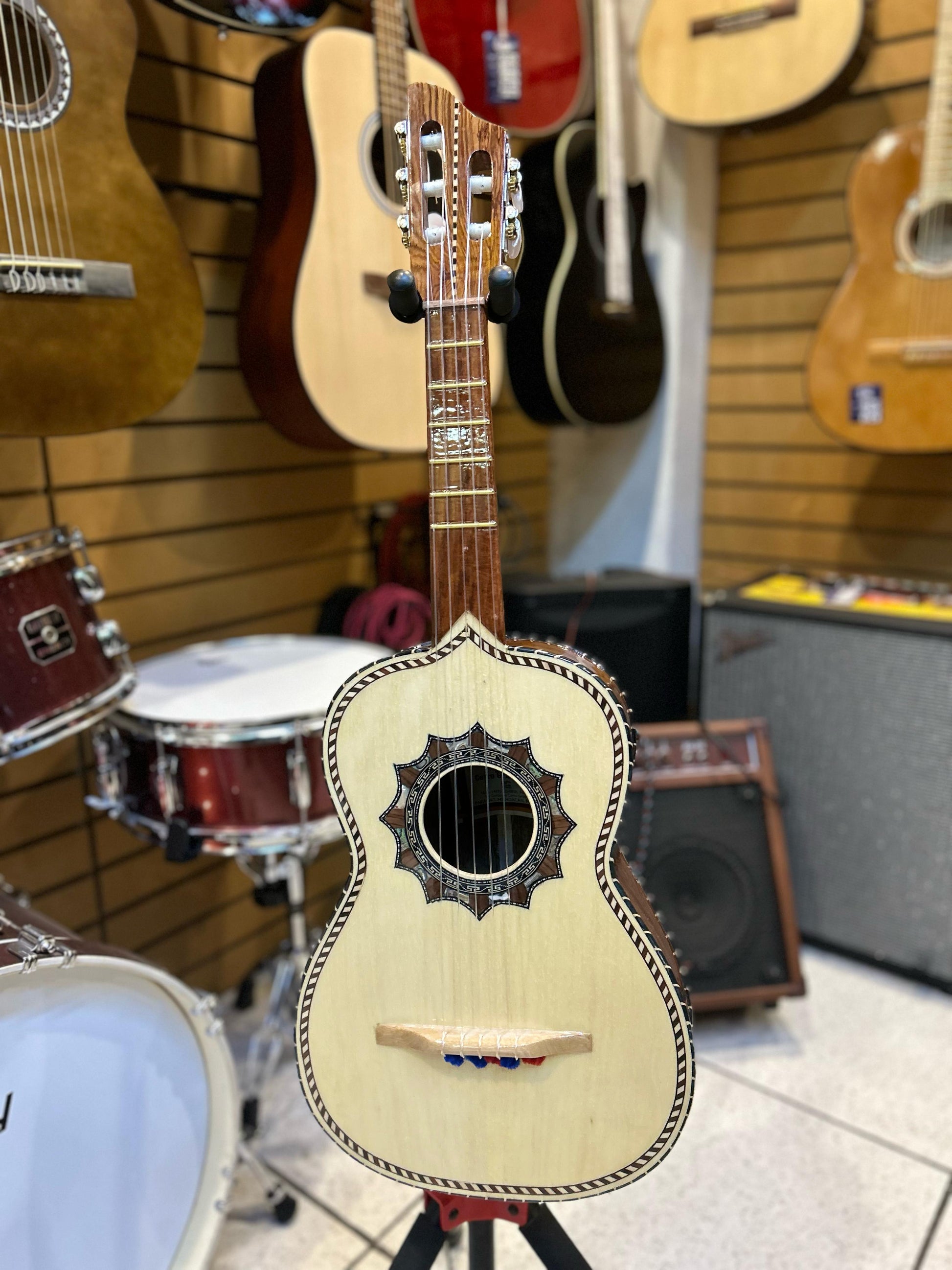 Su caja arqueada tradicional, combinada con el carácter del palo escrito, produce una resonancia fuerte y clara, perfecta para mariachi, son o cualquier expresión del folclor mexicano. ¡Una pieza que honra nuestras raíces con elegancia y fuerza!